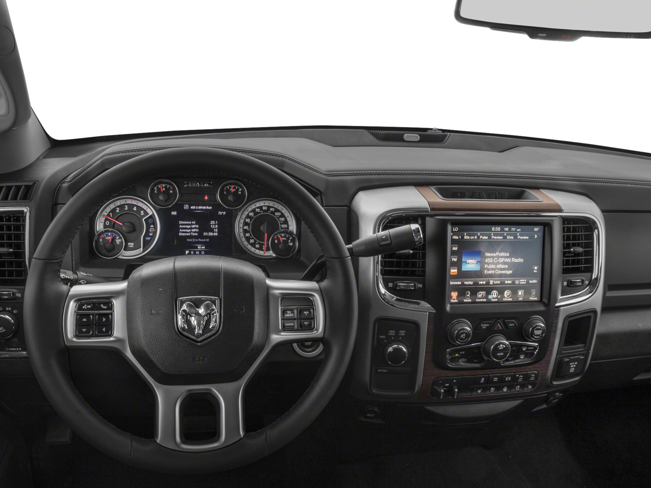 The leather seats in this model are a must for buyers looking for comfort, durability, and style. Bluetooth® technology is built into this 3/4 ton pickup, keeping your hands on the steering wheel and your focus on the road. Keep your hands warm all winter with a heated steering wheel in this vehicle . The state of the art park assist system will guide you easily into any spot. This unit offers Automatic Climate Control for personalized comfort. Never get into a cold vehicle again with the remote start feature on this unit. See what's behind you with the back up camera on the Ram 2500. Maintaining a stable interior temperature in this Ram 2500 is easy with the climate control system. When you encounter slick or muddy roads, you can engage the four wheel drive on this 3/4 ton pickup and drive with confidence. Quickly unlock this vehicle with keyless entry.