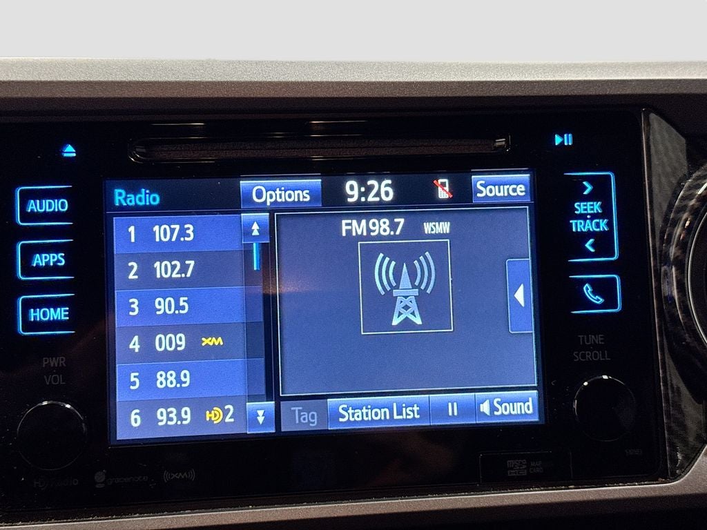 - Radio: Entune Premium w/AM/FM/CD/Nav/App Suite -inc: 6 speakers, 7" high-resolution touch-screen display w/split screen, auxiliary audio jack, USB 2.0 port, iPod connectivity and control, Siri eyes free, advanced voice recognition, Bluetooth® hands-free phone capability, phone book access and music streaming, cache radio, HD Radio, HD predictive traffic and doppler weather overlay, SiriusXM satellite radio w/complimentary SiriusXM All Access 90-day trial subscription included and Gracenotes album cover art, Entune App Suite, Destination Search, iHeartRadio, MovieTickets.com, OpenTable, Pandora, Yelp, Facebook Places and Slacker Radio