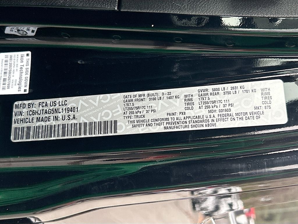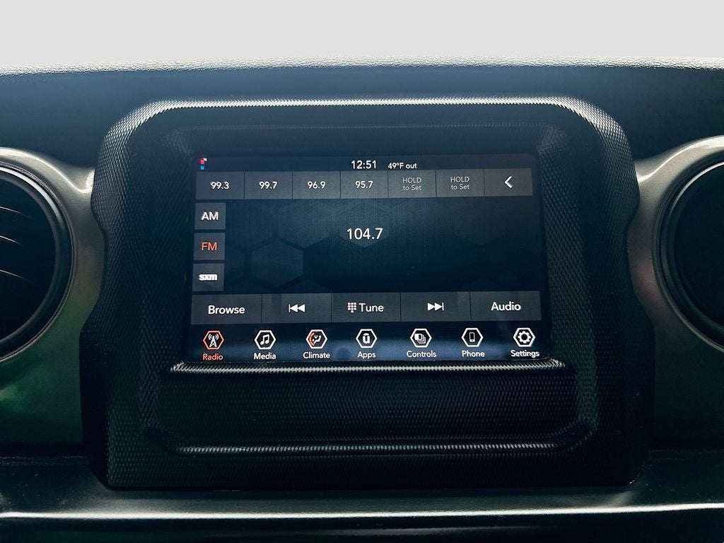 The satellite radio system in this 2022 Jeep Gladiator gives you access to hundreds of nation-wide radio stations with a clear digital signal. Our dealership has already run the CARFAX report and it is clean. A clean CARFAX is a great asset for resale value in the future. This model features a hands-free Bluetooth® phone system. This 1/2 ton pickup is equipped with the latest generation of XM/Sirius Radio. This vehicle comes equipped with Android Auto for seamless smartphone integration on the road. This vehicle offers Apple CarPlay for seamless connectivity. See what's behind you with the back up camera on this vehicle. When you encounter slick or muddy roads, you can engage the four wheel drive on this Jeep Gladiator and drive with confidence. Maintaining a stable interior temperature in this vehicle is easy with the climate control system. This 1/2 ton pickup is painted with a sleek and sophisticated black color.