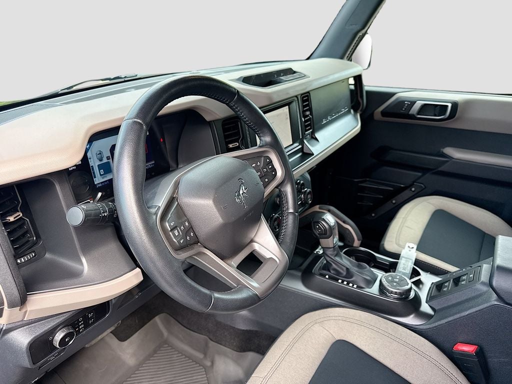 Enjoy the heated seats in this Ford Bronco you will never buy a vehicle without them. Everyone loves the comfort of having a warm seat on those cold winter days. Bluetooth® technology is built into this vehicle, keeping your hands on the steering wheel and your focus on the road. This vehicle is a certified CARFAX 1-owner. The rear parking assist technology on this 1/2 ton suv will put you at ease when reversing. The system alerts you as you get closer to an obstruction. Start this Ford Bronco from inside with remote start. An off-road package is equipped on it. Apple CarPlay: Seamless smartphone integration for it - stay connected and entertained on the go! This vehicle's Cross-Traffic Alert: Safeguarding you from unexpected traffic when reversing. Protect the vehicle from unwanted accidents with a cutting edge backup camera system. The vehicle keeps you comfortable with Auto Climate. You'll never again be lost in a crowded city or a country region with the navigation system on it.
