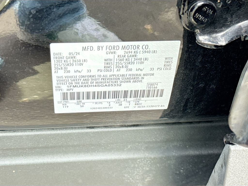 Active Comfort Package: Second Row Hvac Controls; Heated Steering Wheel; Heated ActiveX Seating Material Captain's Chairs; Universal Garage Door Opener (UGDO); Front Fascia; Remote Start System. Equipment Group 200A Standard Package: 3.58 Non-Limited Slip Rear Axle; 10-Speed Automatic Transmission; 2.3L EcoBoost I-4 Engine; AM/FM Stereo. Panoramic Vista Roof with Power Shade. 20" Luster Nickel-Painted Aluminum Wheels. **Equipment listed is based on original vehicle build and subject to change. Please confirm the accuracy of the included equipment by calling the dealer prior to purchase.**