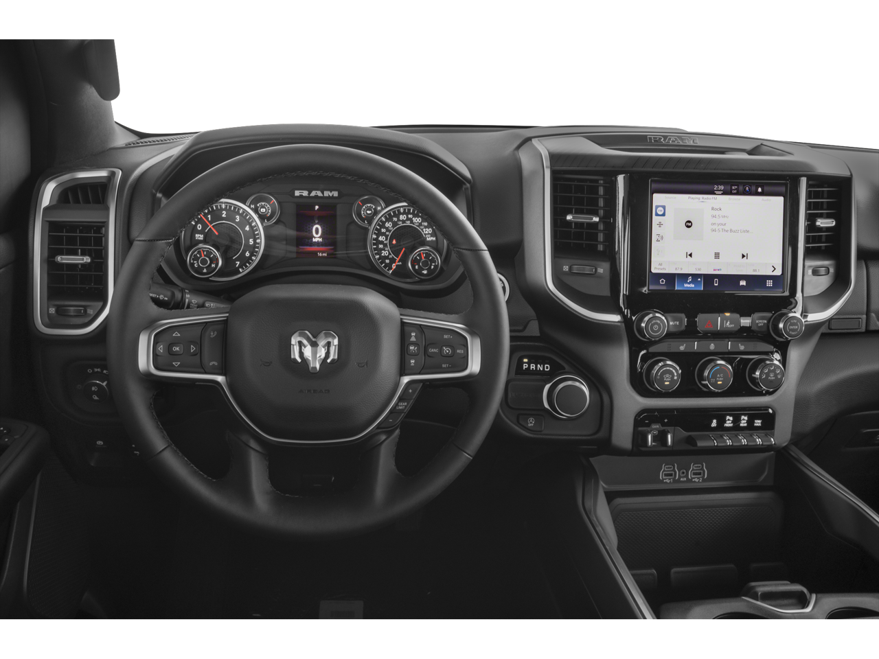 Quick Order Package 23Z Big Horn. Big Horn Level 2 Equipment Group: Google Android Auto; USB Host Flip; Power Adjustable Pedals; Leather Wrapped Steering Wheel; Integrated Voice Command with Bluetooth®; 12" Touchscreen Display; Glove Box Lamp; Auto Power-Folding Mirrors; 115V Auxiliary Rear Power Outlet; Media Hub with 2 Charge Only USBs; Heated Front Seats; Security Alarm; Black Premium Power Mirrors; Apple CarPlay; Premium Overhead Console; 9 Amplified Speakers with Subwoofer; Wireless Charging Pad; Remote Tailgate Release; 115V Auxiliary Power Outlet; LED Dome Lamp with On/off Switch; Universal Garage Door Opener; Sun Visors with Illuminated Vanity Mirrors; LED Footwell Lighting; Power 2-Way Driver Lumbar Adjust; Rear Window Defroster; Rear View Auto Dim Mirror; Rear Power Sliding Window; Connectivity - US/Canada; GPS Navigation; 4G LTE Wi-Fi Hot Spot; GPS Antenna Input; Overhead LED Lamps; Exterior Mirrors with Heating Element; Auto Dim Exterior Driver Mirror; SiriusXM with 360L; Connected Travel and Traffic Services; Heated Steering Wheel; Black Exterior Mirrors; Configurable Drive Mode; 400W Inverter; HD Radio; Uconnect 5 Navigation with 12" Display Radio; Exterior Mirrors with Supplemental Signals; Steering Wheel Mounted Audio Controls; Exterior Mirrors Courtesy Lamps; Air Conditioning ATC with Dual Zone Control; Cluster 7" TFT Color Display; Power Adjust 8-Way Driver Seat; Convex Wide-Angle Exterior Mirror Insert. Night Edition: 275/55R20 OWL All Season Tires; Deluxe Cloth Bucket Seats; Accent Color Premium Power Mirrors; Exterior Mirrors with Supplemental Signals; Black Headlamp Bezels; Exterior Mirrors Courtesy Lamps; Grille Black Surround Black Mesh; Auto Power-Folding Mirrors; Exterior Mirrors with Heating Element; 20" X 9" Aluminum Painted Clad Wheels; Auto Dim Exterior Driver Mirror; Black Exterior Truck Badging; Anti-Spin Differential Rear Axle; Accent Color Door Handles; Accent Color Tailgate Handle; Black Interior Accents; Dual Exhaust with Black Tips; Body Color Front Bumper; Convex Wide-Angle Exterior Mirror Insert; Body Color Rear Bumper with Step Pads; Black Tail Lamp Bezels; Black RAM Grille Badge; Black Painted Exterior Mirrors Caps. 9 Amplified Speakers with Subwoofer. Deluxe Cloth Bucket Seats. Anti-Spin Differential Rear Axle. Billet Silver Metallic CC. MOPAR Front and Rear Rubber Floor Mats. **Equipment listed is based on original vehicle build and subject to change. Please confirm the accuracy of the included equipment by calling the dealer prior to purchase.**