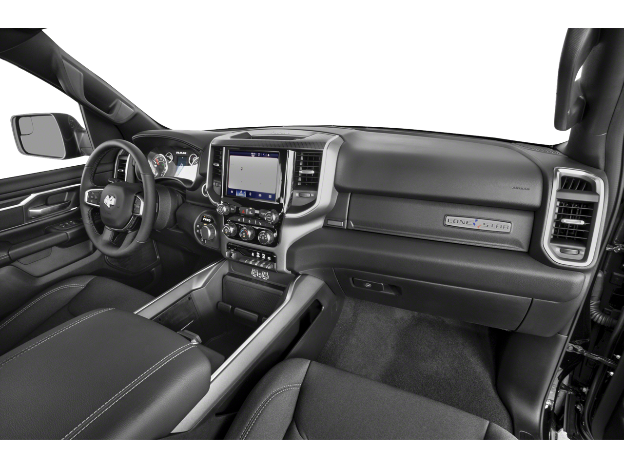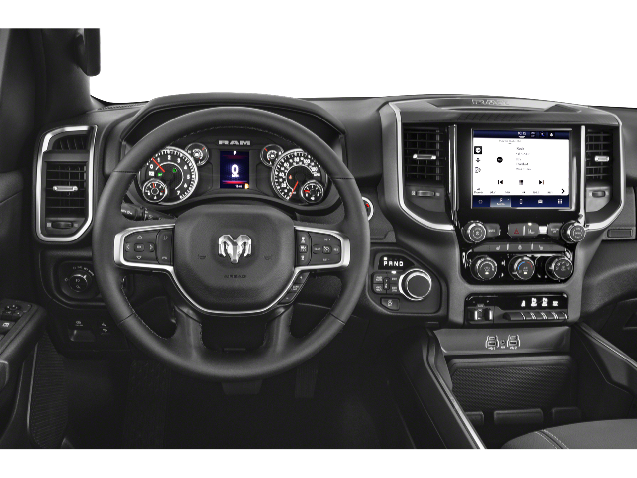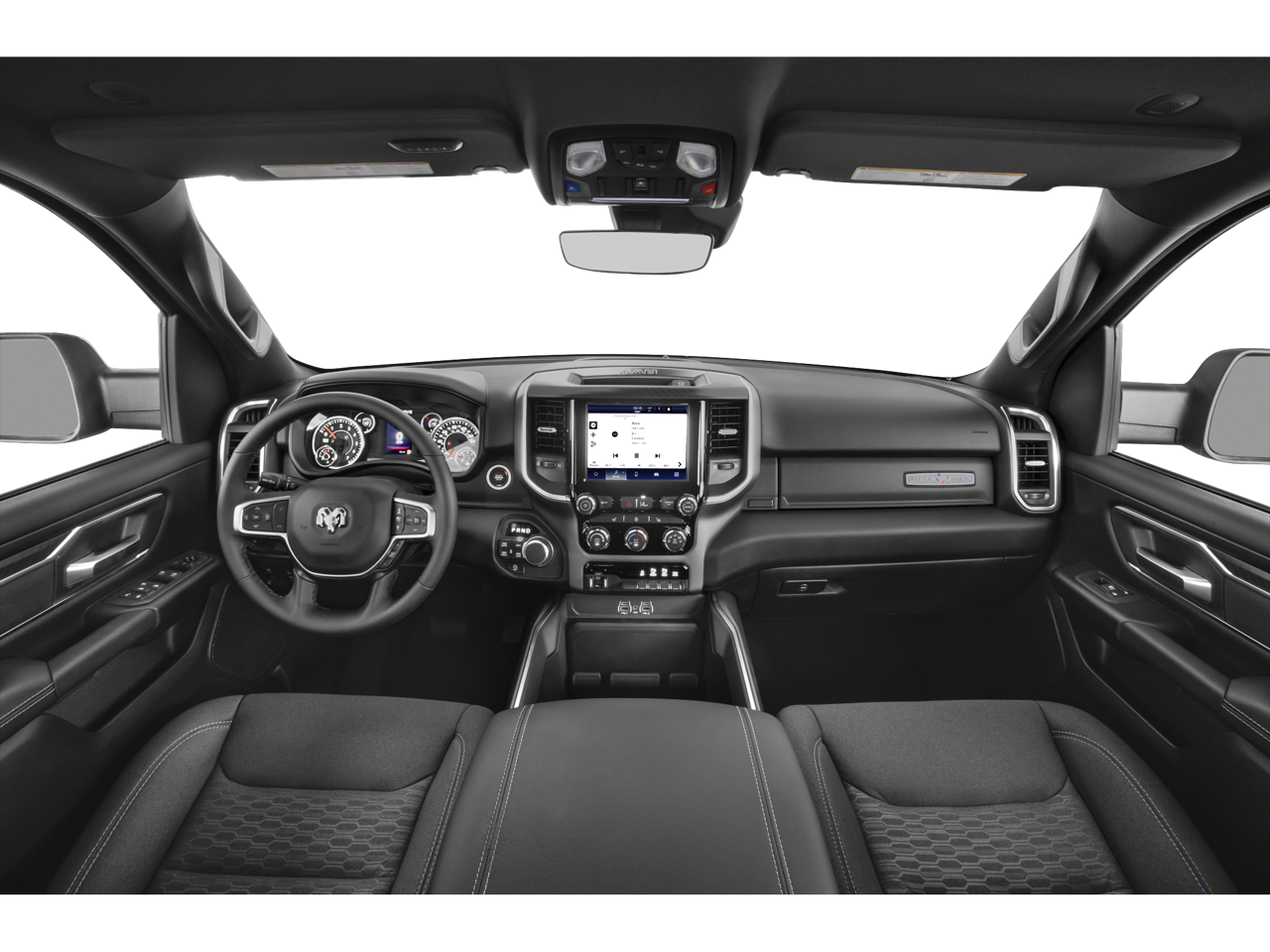 Quick Order Package 21Z Big Horn. Big Horn Level 2 Equipment Group: Google Android Auto; USB Host Flip; Power Adjustable Pedals; Leather Wrapped Steering Wheel; Integrated Voice Command with Bluetooth®; 12" Touchscreen Display; Glove Box Lamp; Auto Power-Folding Mirrors; 115V Auxiliary Rear Power Outlet; Media Hub with 2 Charge Only USBs; Heated Front Seats; Security Alarm; Black Premium Power Mirrors; Apple CarPlay; Premium Overhead Console; 9 Amplified Speakers with Subwoofer; Wireless Charging Pad; Remote Tailgate Release; 115V Auxiliary Power Outlet; LED Dome Lamp with On/off Switch; Universal Garage Door Opener; 2nd Row in Floor Storage Bins; Sun Visors with Illuminated Vanity Mirrors; LED Footwell Lighting; Power 2-Way Driver Lumbar Adjust; Rear Window Defroster; Rear View Auto Dim Mirror; Rear Power Sliding Window; Connectivity - US/Canada; GPS Navigation; 4G LTE Wi-Fi Hot Spot; GPS Antenna Input; Overhead LED Lamps; Exterior Mirrors with Heating Element; Auto Dim Exterior Driver Mirror; SiriusXM with 360L; Connected Travel and Traffic Services; Heated Steering Wheel; Black Exterior Mirrors; Configurable Drive Mode; 400W Inverter; HD Radio; Uconnect 5 Navigation with 12.0" Display Radio; Exterior Mirrors with Supplemental Signals; Steering Wheel Mounted Audio Controls; Exterior Mirrors Courtesy Lamps; Air Conditioning ATC with Dual Zone Control; Cluster 7.0" TFT Color Display; Power Adjust 8-Way Driver Seat; Convex Wide-Angle Exterior Mirror Insert. Night Edition: 275/55R20 OWL All Season Tires; Deluxe Cloth Bucket Seats; Accent Color Premium Power Mirrors; Exterior Mirrors with Supplemental Signals; Black Headlamp Bezels; Exterior Mirrors Courtesy Lamps; Grille Black Surround Black Mesh; Auto Power-Folding Mirrors; Exterior Mirrors with Heating Element; 20" X 9.0" Aluminum Painted Clad Wheels; Auto Dim Exterior Driver Mirror; Black Exterior Truck Badging; Anti-Spin Differential Rear Axle; Accent Color Door Handles; Accent Color Tailgate Handle; Black Interior Accents; Dual Exhaust with Black Tips; Body Color Front Bumper; Convex Wide-Angle Exterior Mirror Insert; Body Color Rear Bumper with Step Pads; Black Tail Lamp Bezels; RAM Grille Badge - Black; Black Painted Exterior Mirrors Caps. Bed Utility Group: MOPAR Spray in Bedliner; MOPAR Deployable Bed Step; MOPAR 4 Adjustable Cargo Tie-Down Hooks; Pick-Up Box Lighting; Exterior 115V AC Outlet. Quick Order Package 23Z Big Horn: Big Horn Badge. Dual-Pane Panoramic Sunroof. 9 Amplified Speakers with Subwoofer. Deluxe Cloth Bucket Seats. Anti-Spin Differential Rear Axle. Diamond Black Crystal PC. MOPAR Front and Rear Rubber Floor Mats. 3.55 Rear Axle Ratio. **Equipment listed is based on original vehicle build and subject to change. Please confirm the accuracy of the included equipment by calling the dealer prior to purchase.**