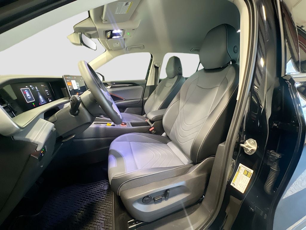 - Radio: MIB4 Composition Media Touchscreen AM/FM -inc: WMA/MP3/FLAC player w/USB, 12.9" touchscreen multi-function center display w/backlit sliders, voice control, 6 speakers + center speaker (7 speakers total) sound system, capability for in-vehicle 4G LTE enabled Wi-Fi (cellular data plan required; includes limited trial), capability for VW Car-Net services (capabilities for services vary; requires enrollment or subscription), Bluetooth® connectivity (for compatible devices), SiriusXM w/360L (w/3-month free trial subscription; 360L services require acceptance of Car-Net terms), App-Connect smartphone integration (w/Apple CarPlay, Android Auto and MirrorLink) via USB, wireless App-Connect smartphone integration (for compatible devices) w/multi-phone pairing capability, 45W fast charging (for compatible mobile phones and accessories) via USB in both rows and Qi wireless inductive charger, cooled, up to 15W (for compatible mobile phones and accessories)